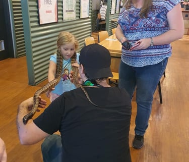 Here, we focused on the younger generation and, through entertainment, we educated them on the importance of reptiles within our ecosystems. Up close and personal with some of our beautiful Australian native snakes, lizards and turtles within their classrooms is an experience that they carry with them for the rest of their lives.